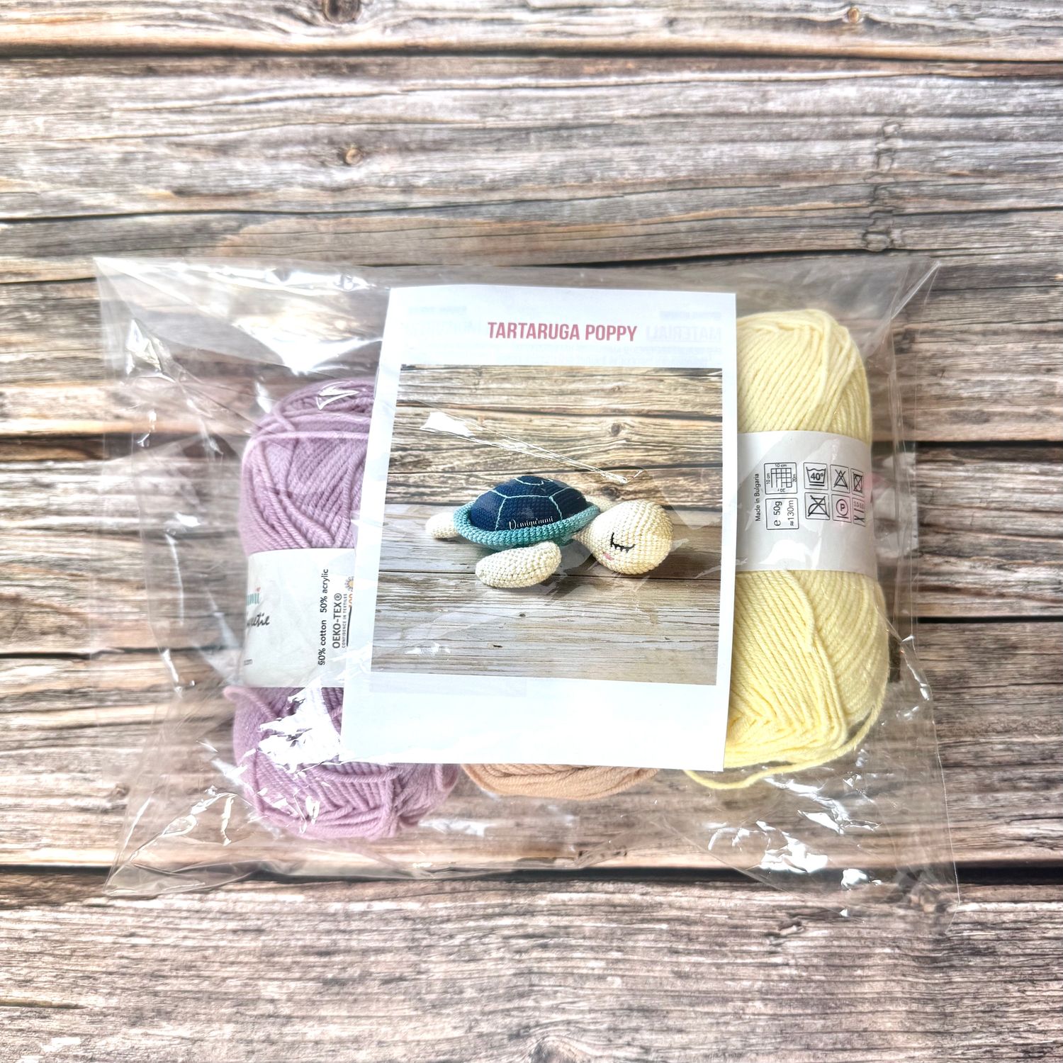 Acquistando questo kit riceverai il pattern da seguire ed i filati necessari per realizzare un'adorabile tartarughina di nome Poppy.